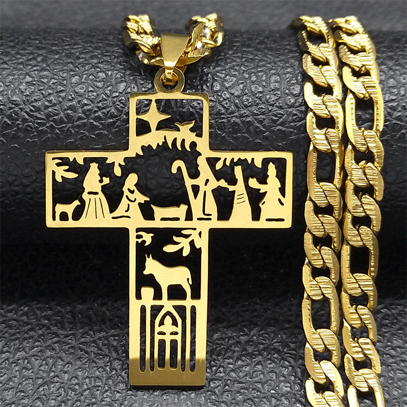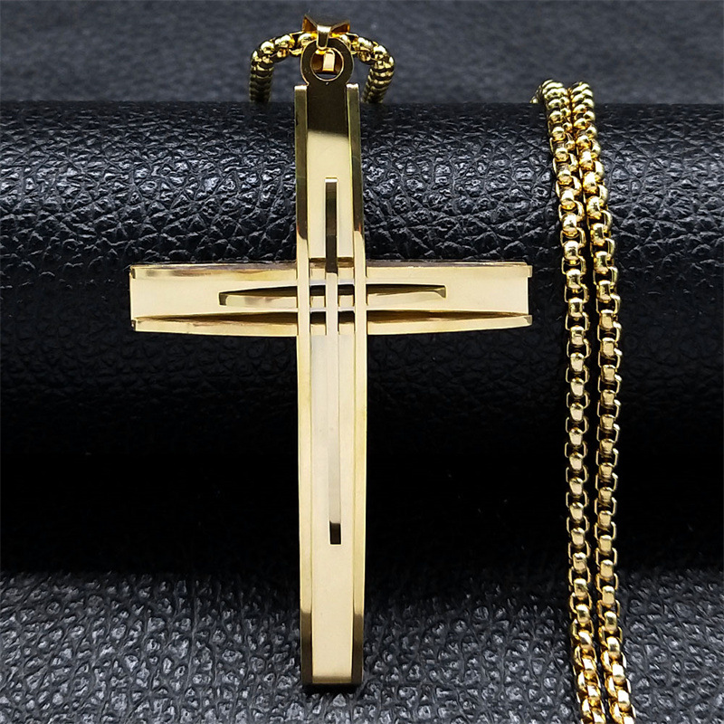 クロスボーダー新品ビッグクロスネックレスメンズステンレスゴールドクリスマス神チェーンネックレスクリスマスプレゼントジュエリー
