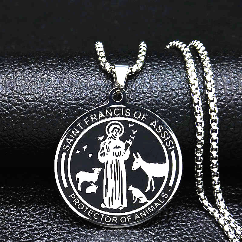 国境を越えた新型聖フランシス動物保護者ステンレス教会は勲章ネックレスアクセサリーを身に着けている