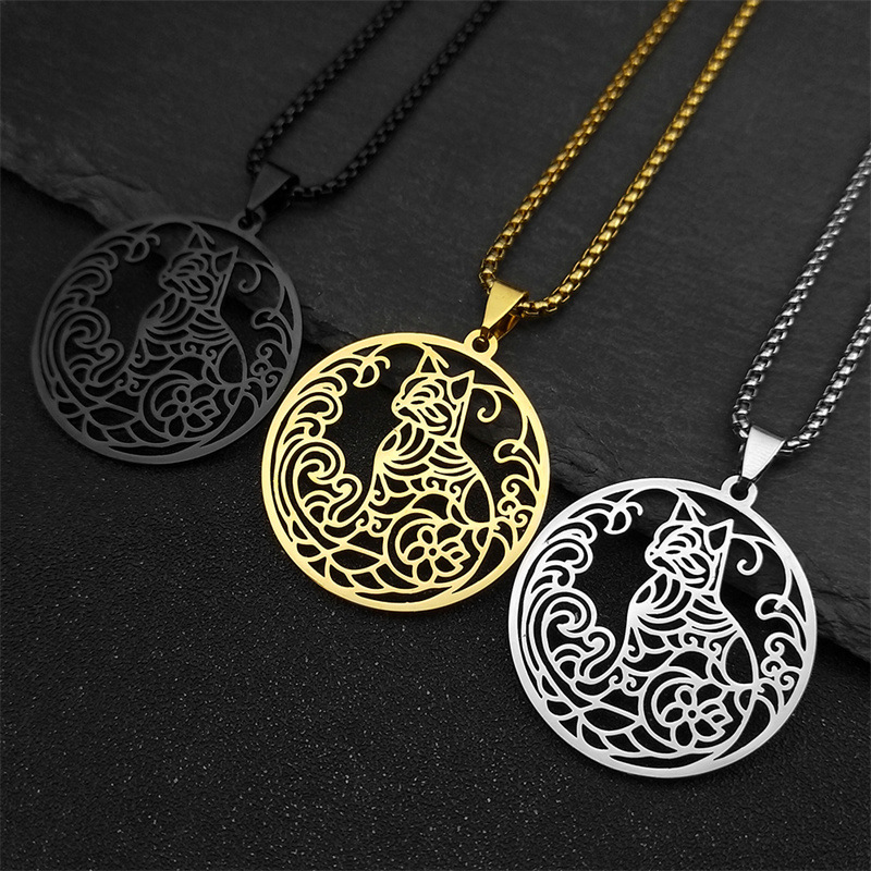 古典的な北欧バイキング円形猫ペンダント潮人ヒップホップステンレスセーターとネックレス男性アクセサリー