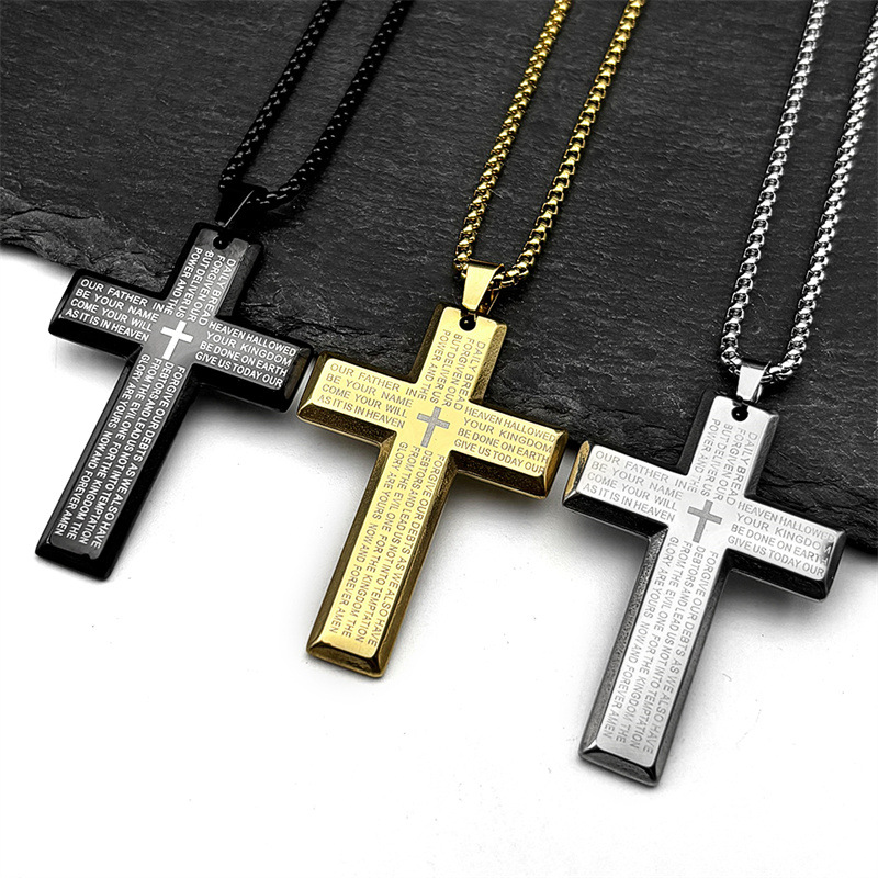 クロスボーダー男性クロスペンダントステンレス男性ネックレスゴールドシルバー黒男性ネックレスジュエリー卸売