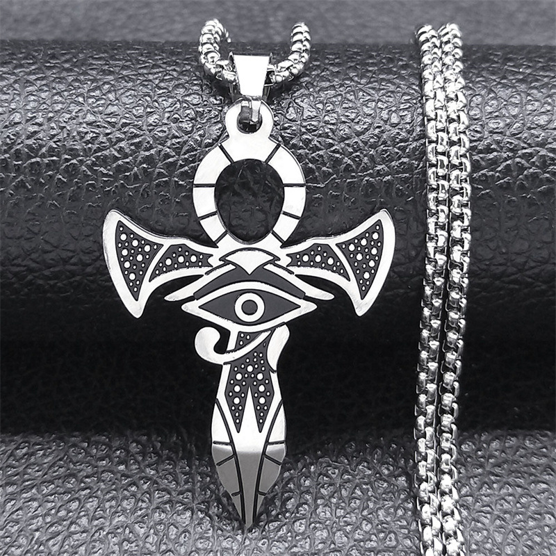 2024国境を越えた欧米のエジプトのアンカホルスの目のアクセサリーのシンプルなクロスペンダントのステンレスネックレス