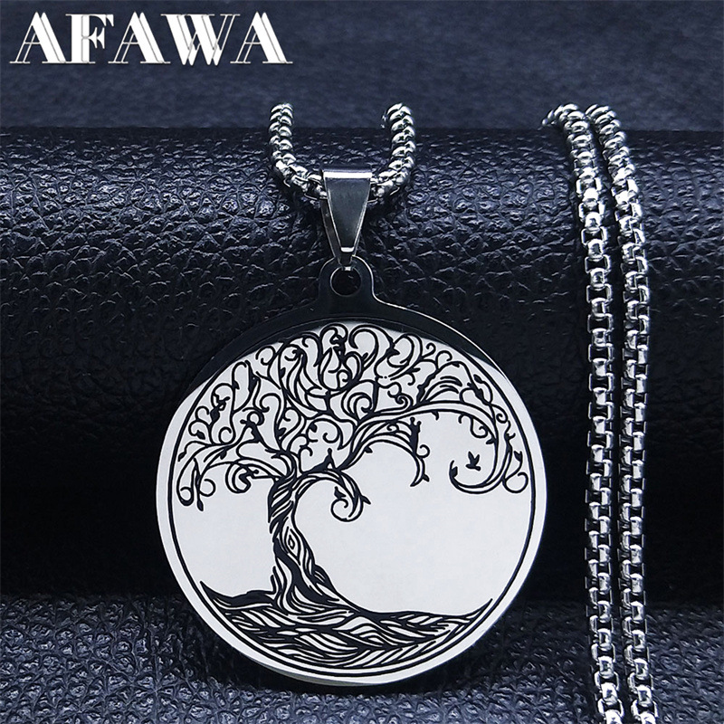 クロスボーダー速売アマゾン黒油生命の木ネックレスステンレス女性円形ペンダントアクセサリー