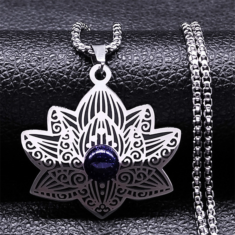 外国貿易のステンレスのペンダントの古代インドのヨガの女性のネックレスの軽くて豪華な黒油のハスの花のペンダントのネックレスのアクセサリー