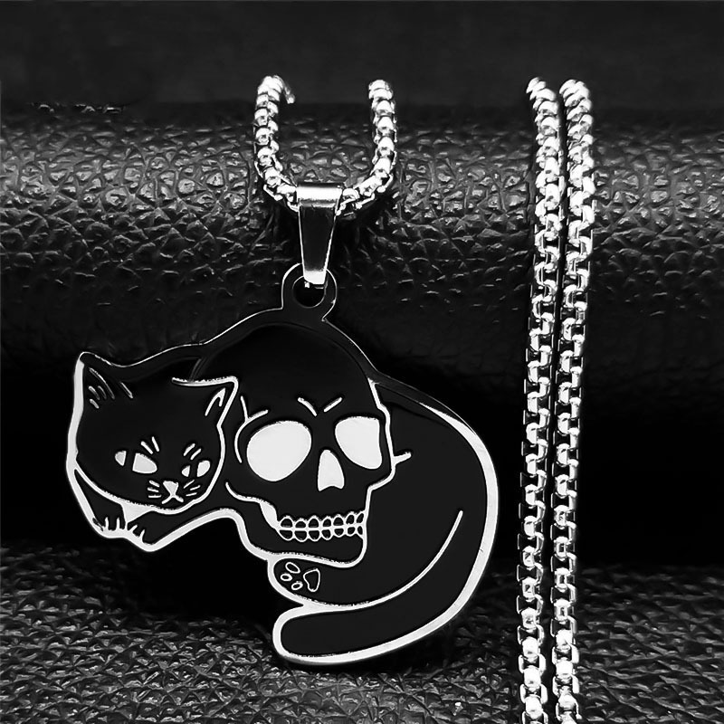 国境を越えた新型ファッション呪術猫頭蓋ステンレスネックレス中性風呪術ペンダントアクセサリー