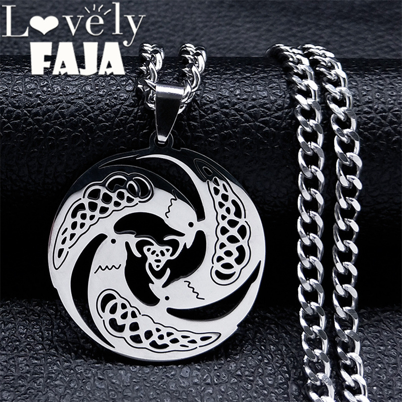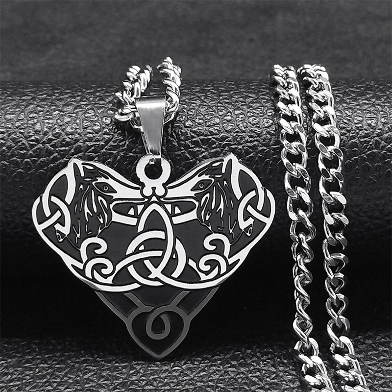 国境を越えた新しいケルトカラス三一結ステンレスネックレス銀色アイルランド結チタン鋼ペンダントアクセサリー