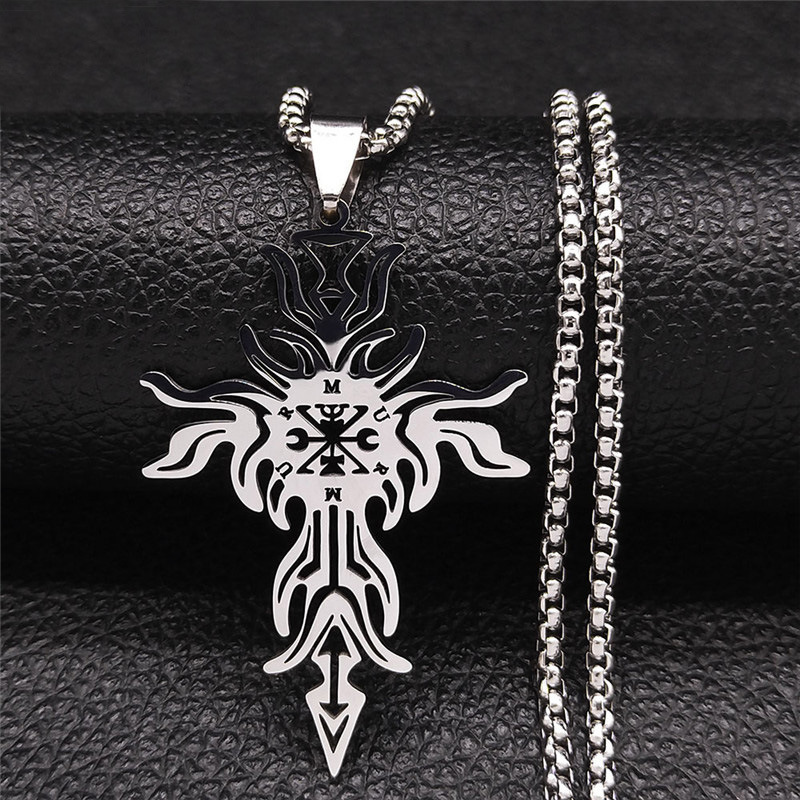 国境を越えた新型北欧海賊コンパスケルト結三位一体結ステンレスネックレス男性アクセサリー