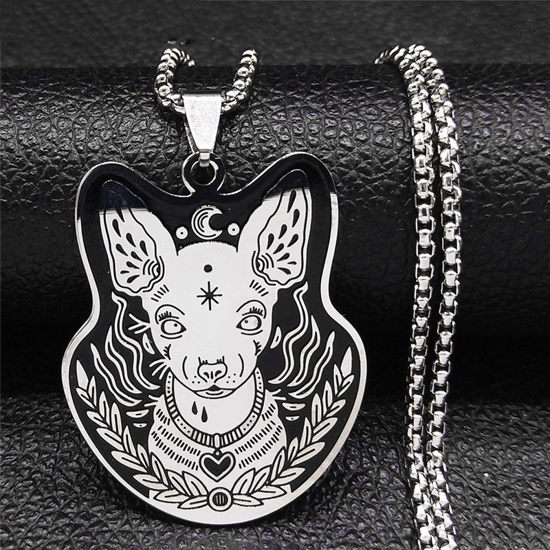 クロスボーダー新品2023チワワステンレスブラックエナメルシルバーステンレスネックレス中性風チタンスチールペンダント