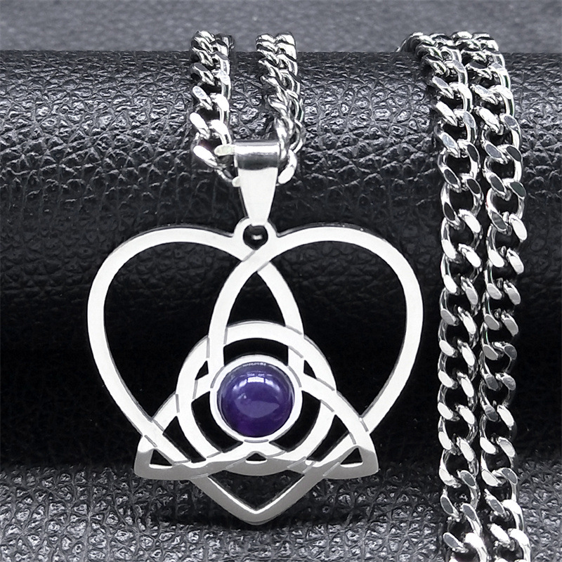 欧米の個性的なゴシックの維京の双狼のケルト人はステンレスのネックレスのハート型のアイルランドの結びの護符の装飾品を結びます。