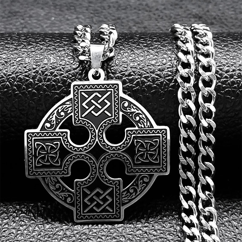 国境を越えたゴシックケルト人はアイルランドの十字のステンレスのネックレスを結びます。