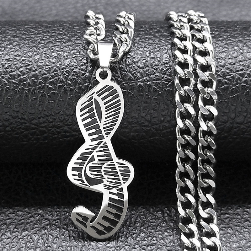 2023電子ピアノの音符のペンダントのネックレスの女性のピアノの鍵のステンレスのゴシックのネックレスの音楽の記号の装飾品