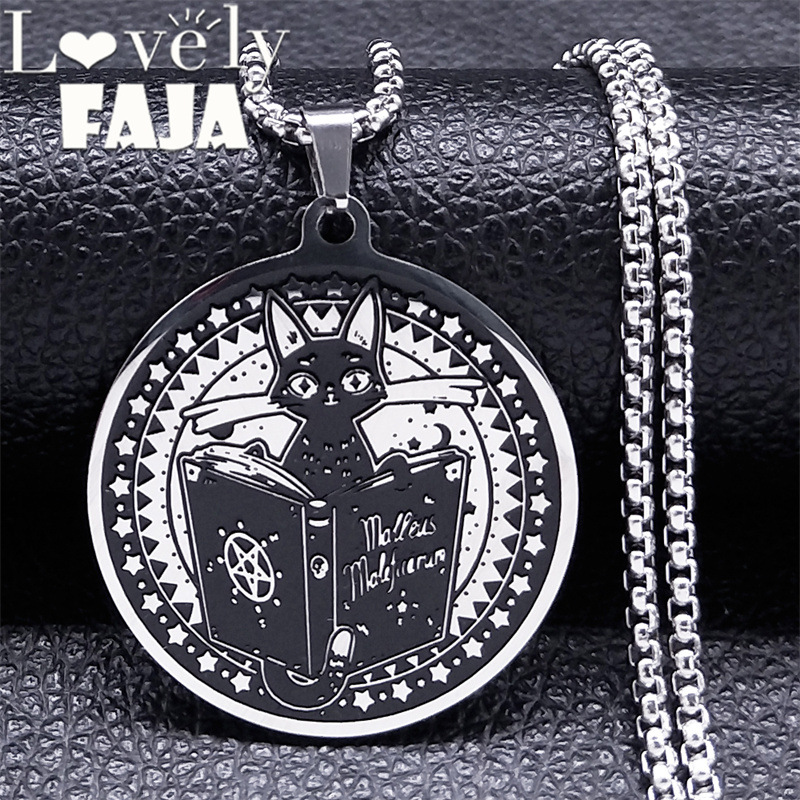 国境を越えたファッションゴシック呪術猫魔法書五芒星猫ステンレス男性女性呪術ネックレス
