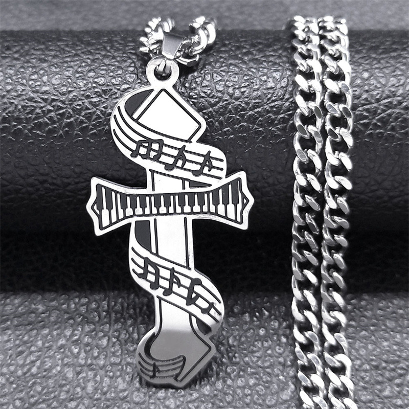 欧米のクロスボーダー新型創意電子ピアノ音符クロス男性ペンダントステンレスネックレスアクセサリー