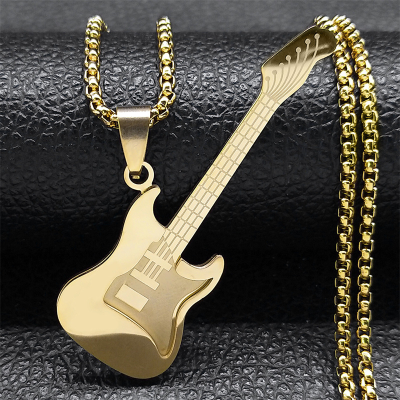 欧米のファッショントレンドロックギター吊りパンク音楽ステンレス鎖個性ヒップホップストリートネックレス