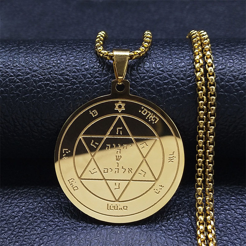 欧米のソロモン五芒星のステンレスのネックレスの女性の金色のお守りの呪術のペンダントのネックレス