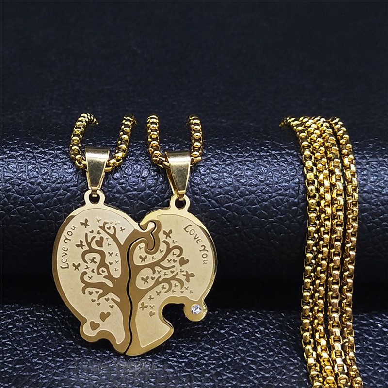 Loveyou二重心カップルペンダントツリーパターンチタン钢ステンレス钢カップルネックレスクリエイティブ赠り物ロック骨