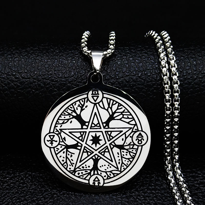 欧米のステンレス五芒星生命の木のネックレスの銀色の男女の護符の呪術の崇拝者のネックレスの装飾品