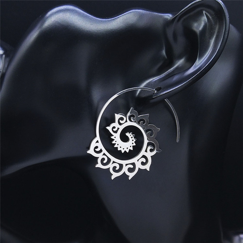 インド部族民族ステンレススパイラルフープイヤリングボヘミアン曼荼羅花ボヘミアンイヤリング女性