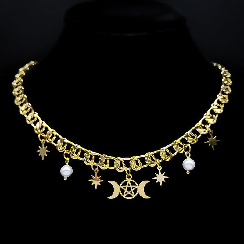 欧米の三重の月の女神の五芒星のネックレスのステンレスの女性の神秘的なハーカートの女性は宝石の月を飾ります。