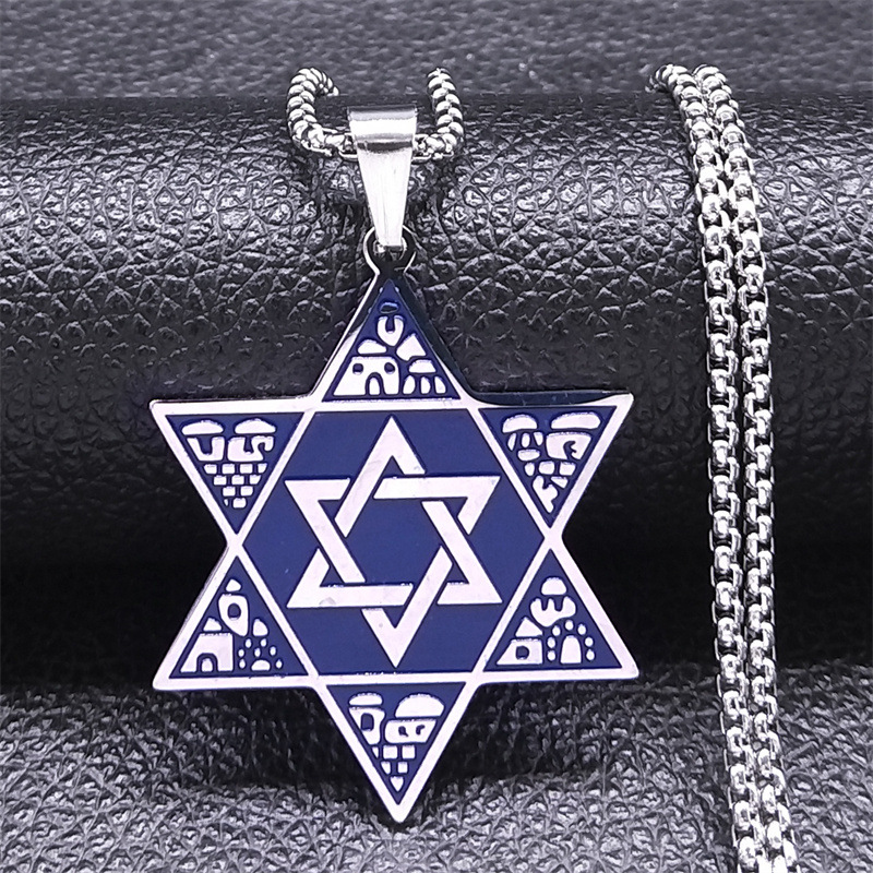 ステンレスのネックレス欧米の個性的なレトロな青い六芒星のファッションの長いタイプの男性のペンダントはファッションのクールなヒップホップを飾ります。