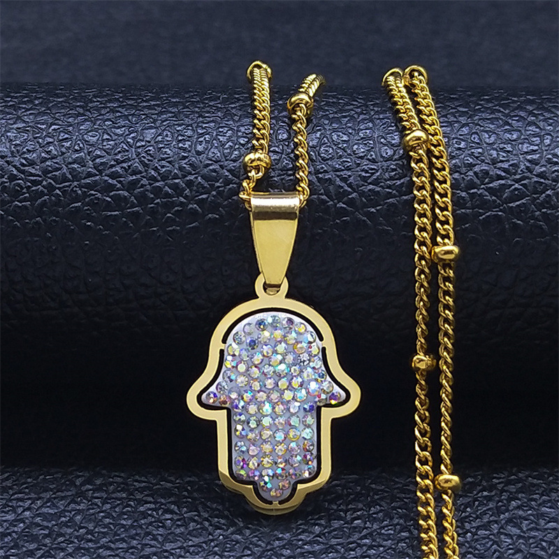 レトロ欧米のファティマの手のドリルのペンダントの女性の男性のステンレスのネックレスの金メッキの青い目のネックレス