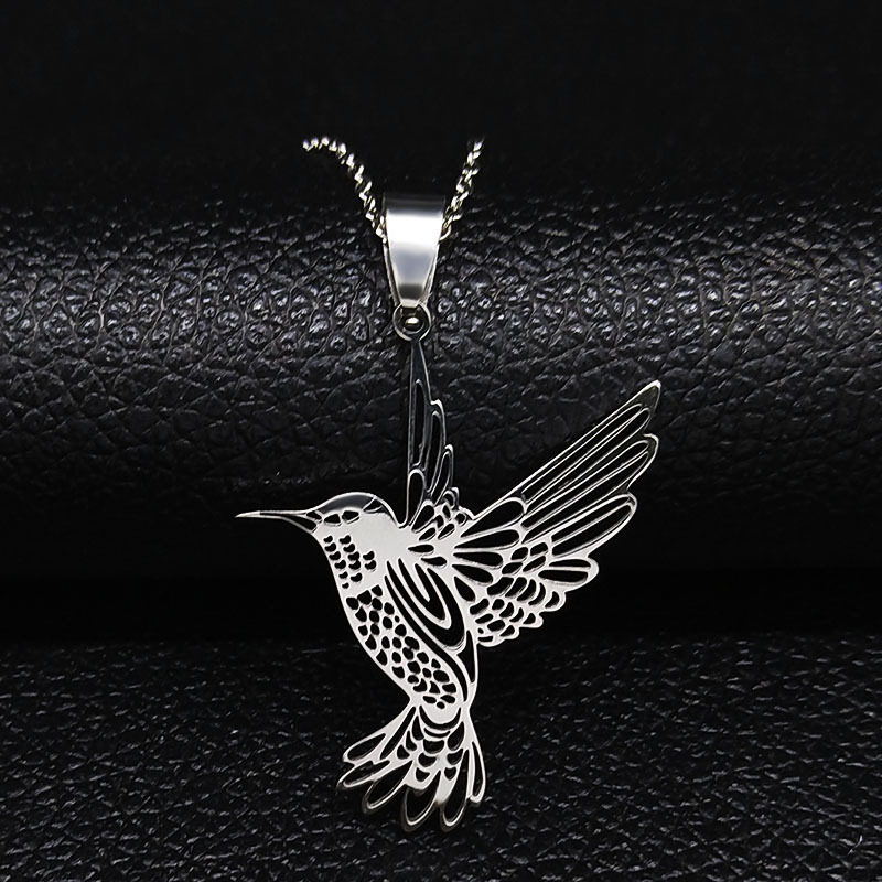ステンレスハチドリのネックレスファッションシンプルな透かし彫りハチドリのペンダントの鎖