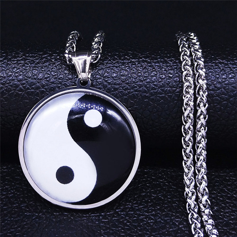 欧米の映画とテレビの周辺のガラスのペンダントの太極の図案の項はファッションのシンプルなカップルのステンレスのネックレスを飾ります。