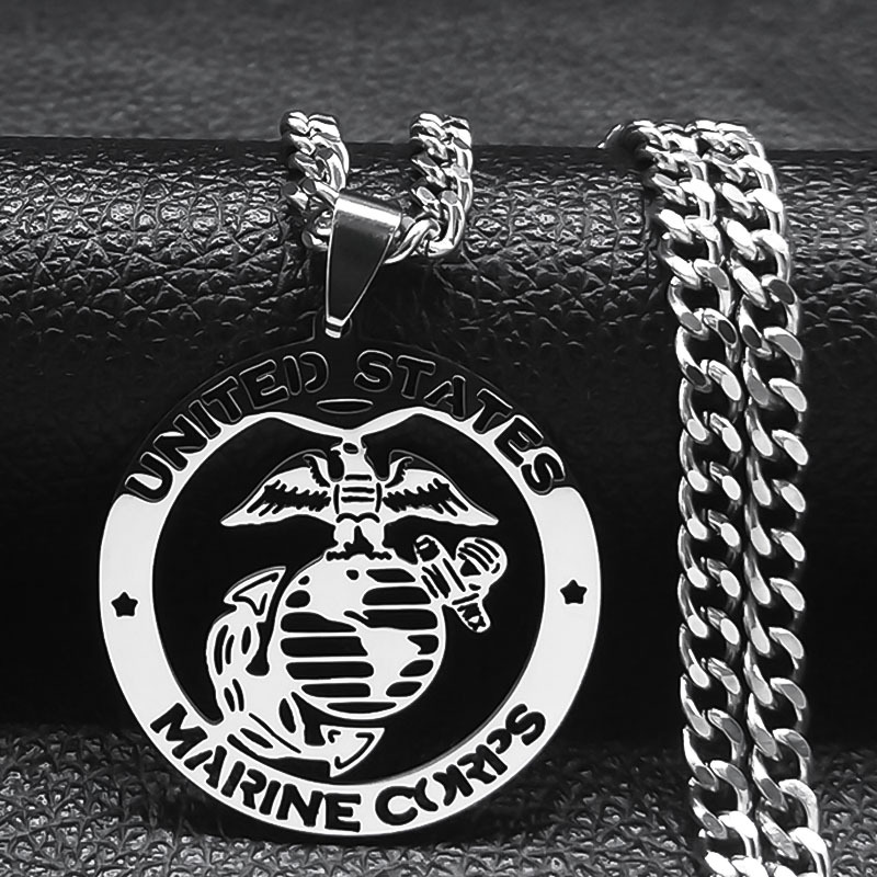 国境を越えたファッションの新型カット透かし彫りアメリカ海兵隊メダルネックレスペンダント十字チェーンステンレスネックレス