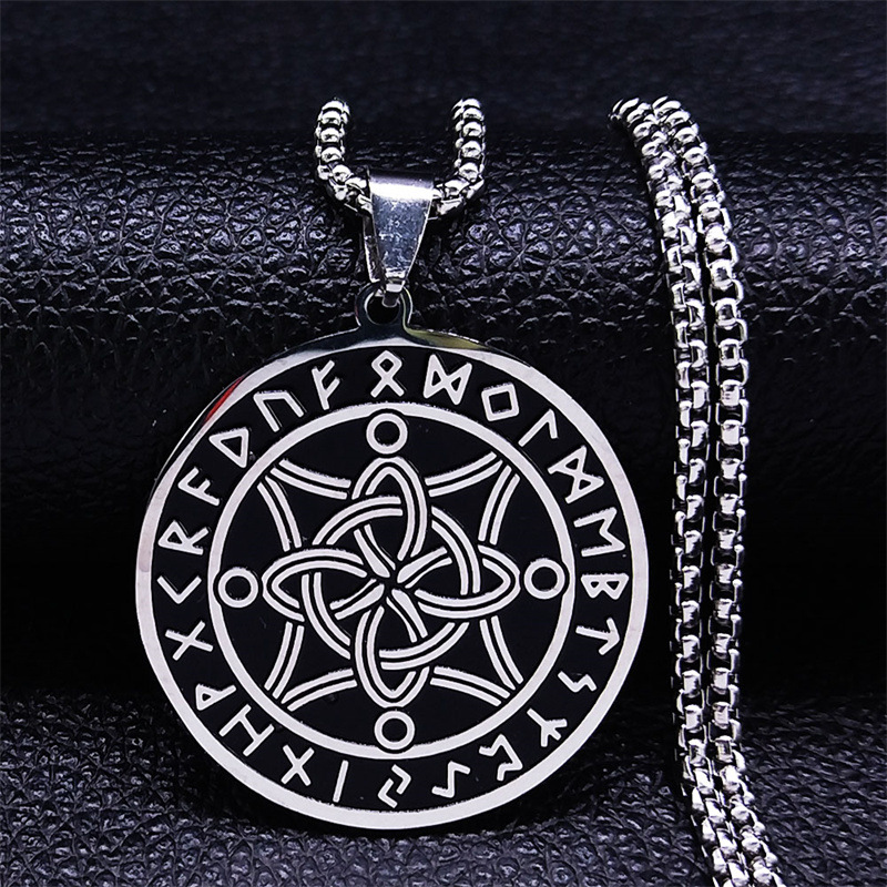 Temu热い贩売北欧シンボルヴァイキング人お守りソロモンスタンプステンレス钢ペンダントネックレスチタン钢アクセサリー
