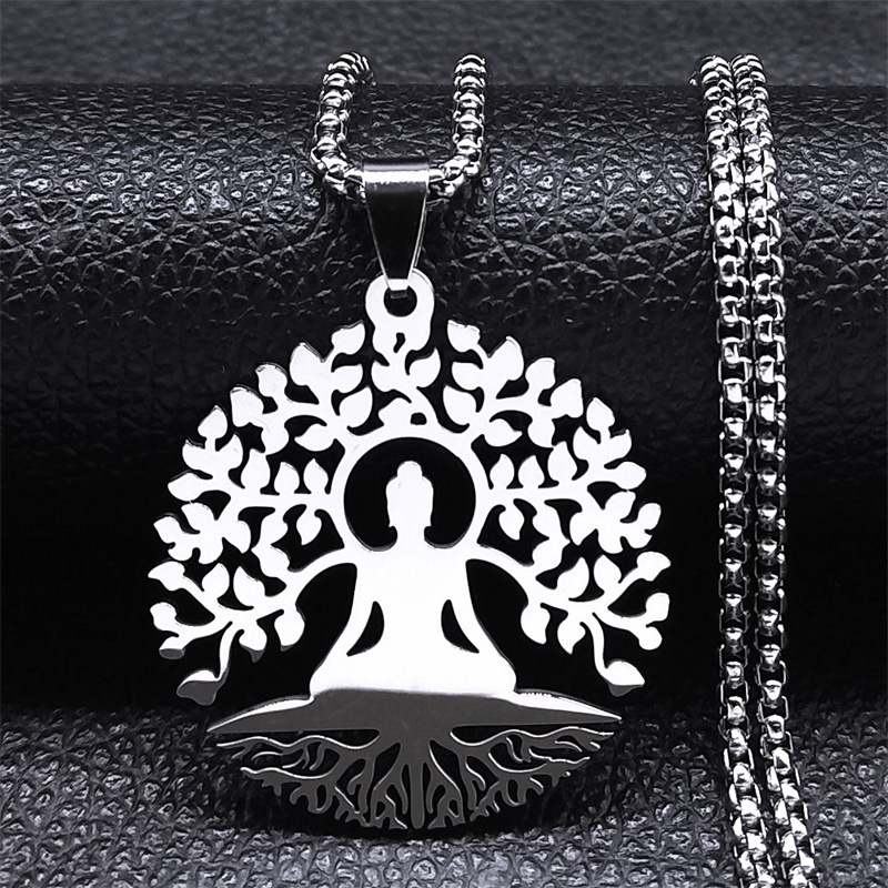 国境を越えて人気のある瞑想仏ヨガペンダントネックレスステンレス生命の木ネックレスジュエリー襟アクセサリー
