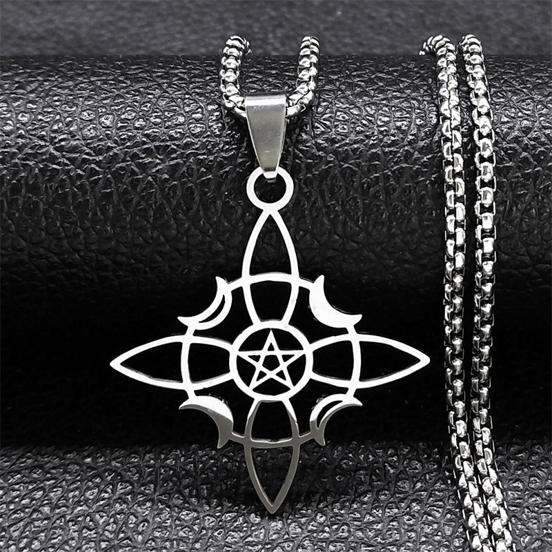 魔女五角星ケルト結ネックレスステンレス新月チタンネックレス呪術箱チェーンジュエリーアクセサリー