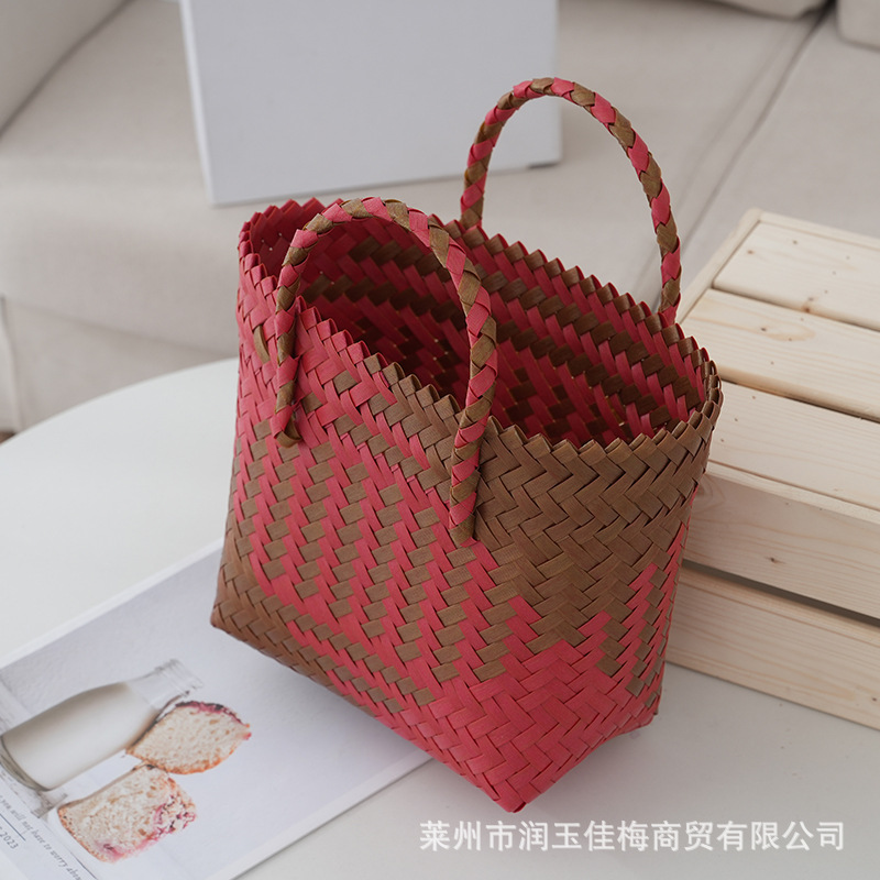 メーカー新型プラスチック編みハンドバッグ編みバスケットお土産バスケットバッグビーチ女性バッグ