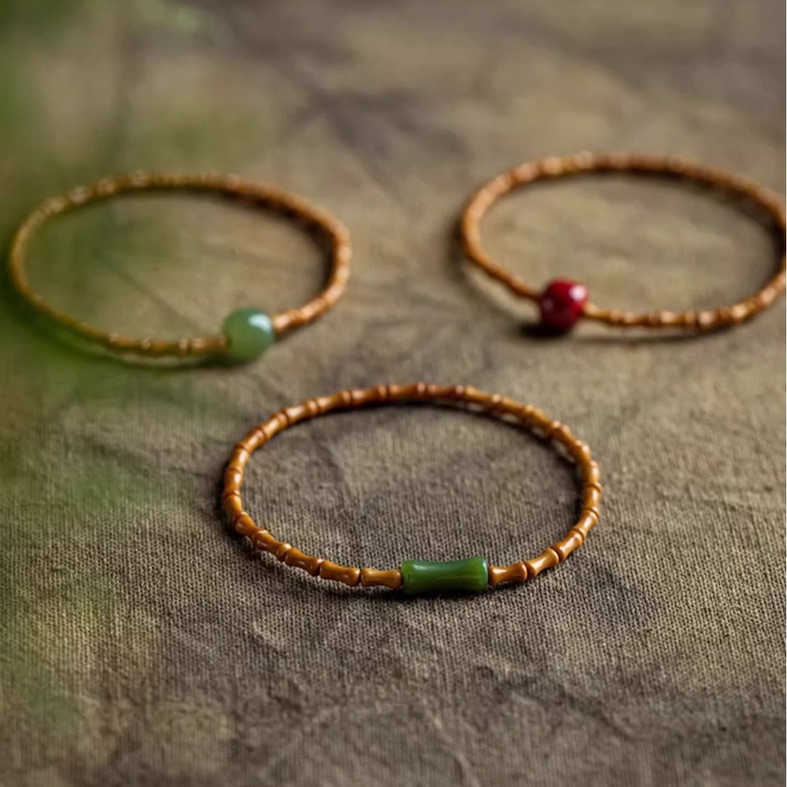 さまざまなオリーブ種子竹ブレスレット、複数のサークルの炭焼き猫の爪、天然の星と月のブレスレット、新しい中国風のカップルギフト