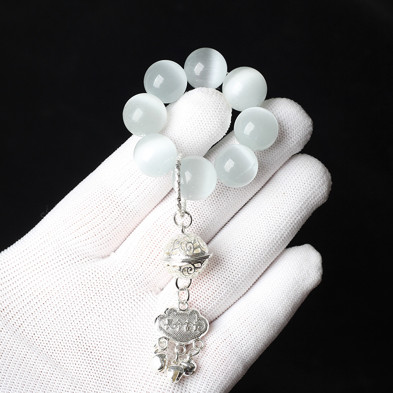 高品質天然猫眼石水晶玉ミニ手串鈴本命年仏珠小手撚女子学生プレゼント