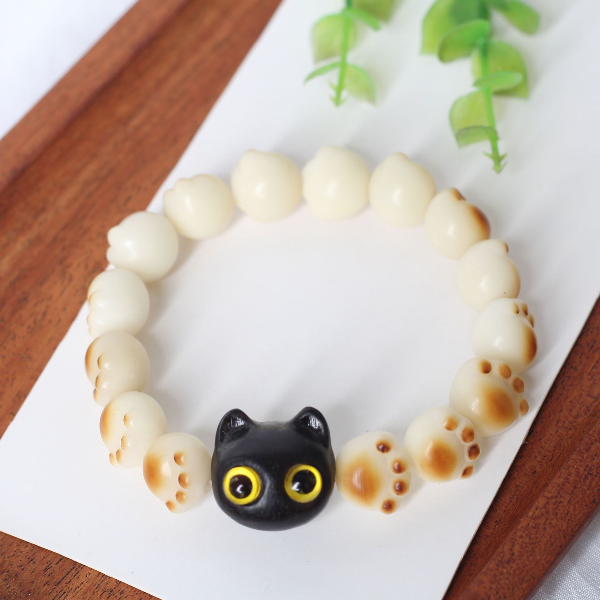 白玉菩提炭焼猫爪携帯ストラップ紛失防止リングストラップレディース可愛い手撚りビーズペンダント