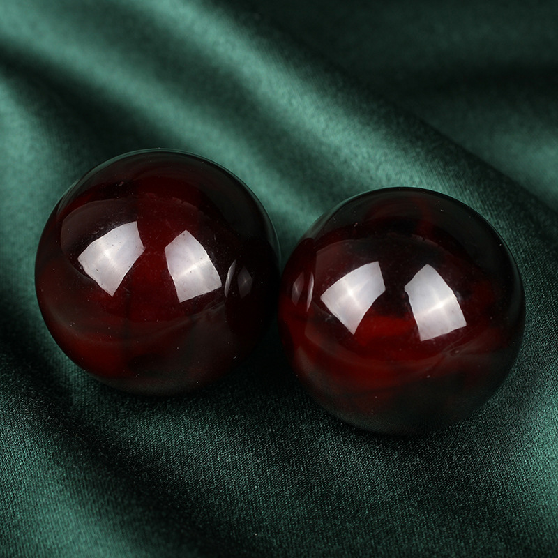 本格的な血の赤いヤクの角の保健のボールの天然の置物の50mmの対の赤い消耗の牛の角の帯の木製の包装箱