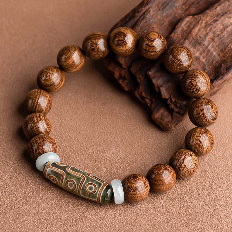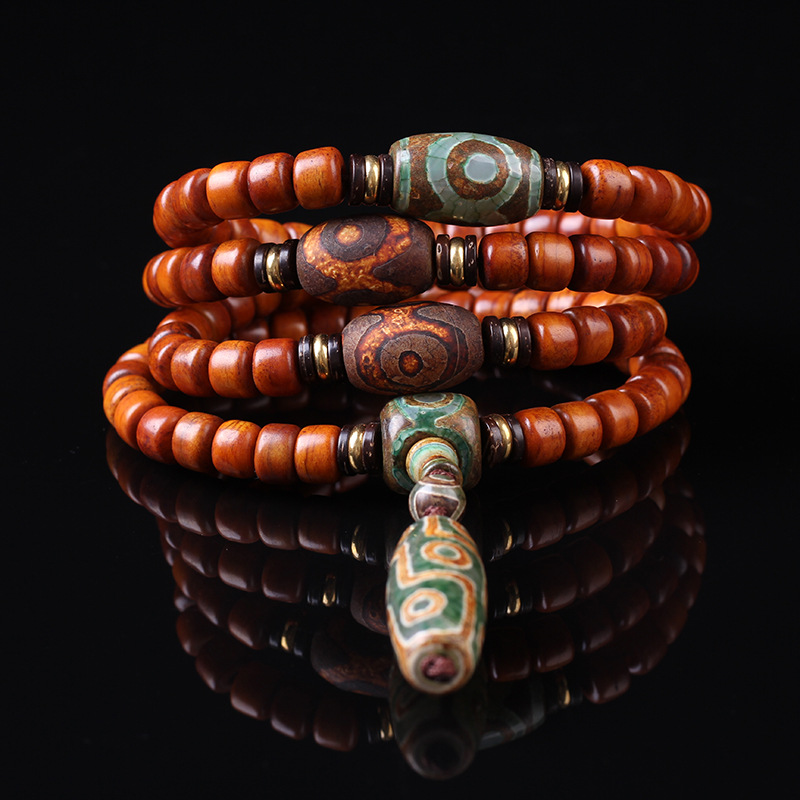 正統金糸檀木手串男民族風チベット式瑪瑙九眼天珠ブレスレット仏珠数珠学生プレゼント