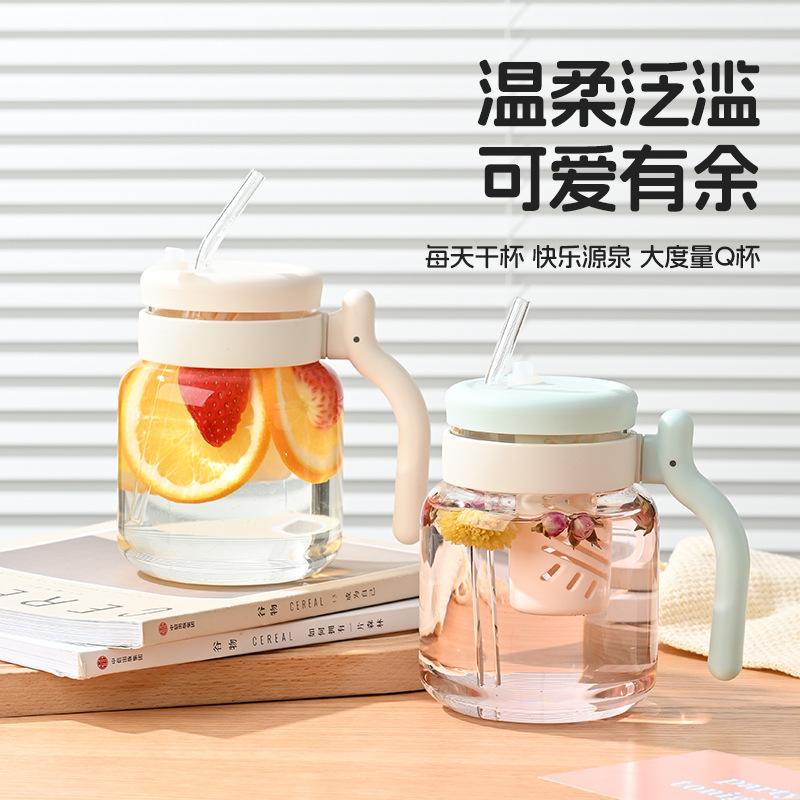 国境を越えて人気の高い大容量フラワーティーカップ、ストロー付きガラスカップ、高硼珪酸ガラス製車載用アイスカップ、巨大ウォーターカップ