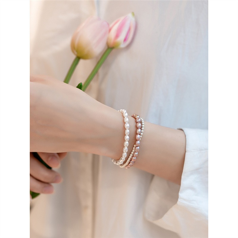天然淡水真珠のブレスレットの女性の小さい米の玉の弾力の縄のブレスレットの女性は色を落とさないでシンプルで軽い豪華な大衆の仙気風です。