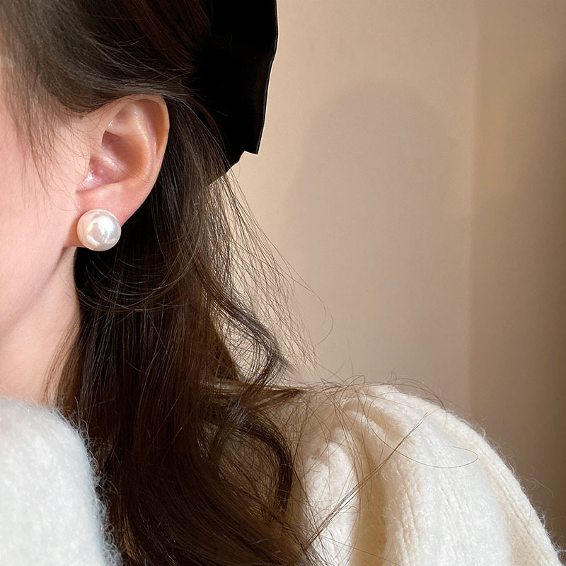 真円925純銀大真珠ピアス女軽豪華高級感養耳洞足銀2025年新作耳飾り女