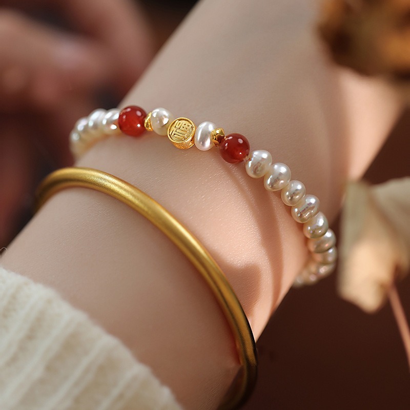 天然淡水真珠のブレスレットの女性の軽豪華な大衆の高級感の新しい中国式のシャキンメノウの手の串は色を落とさないで飾っています。
