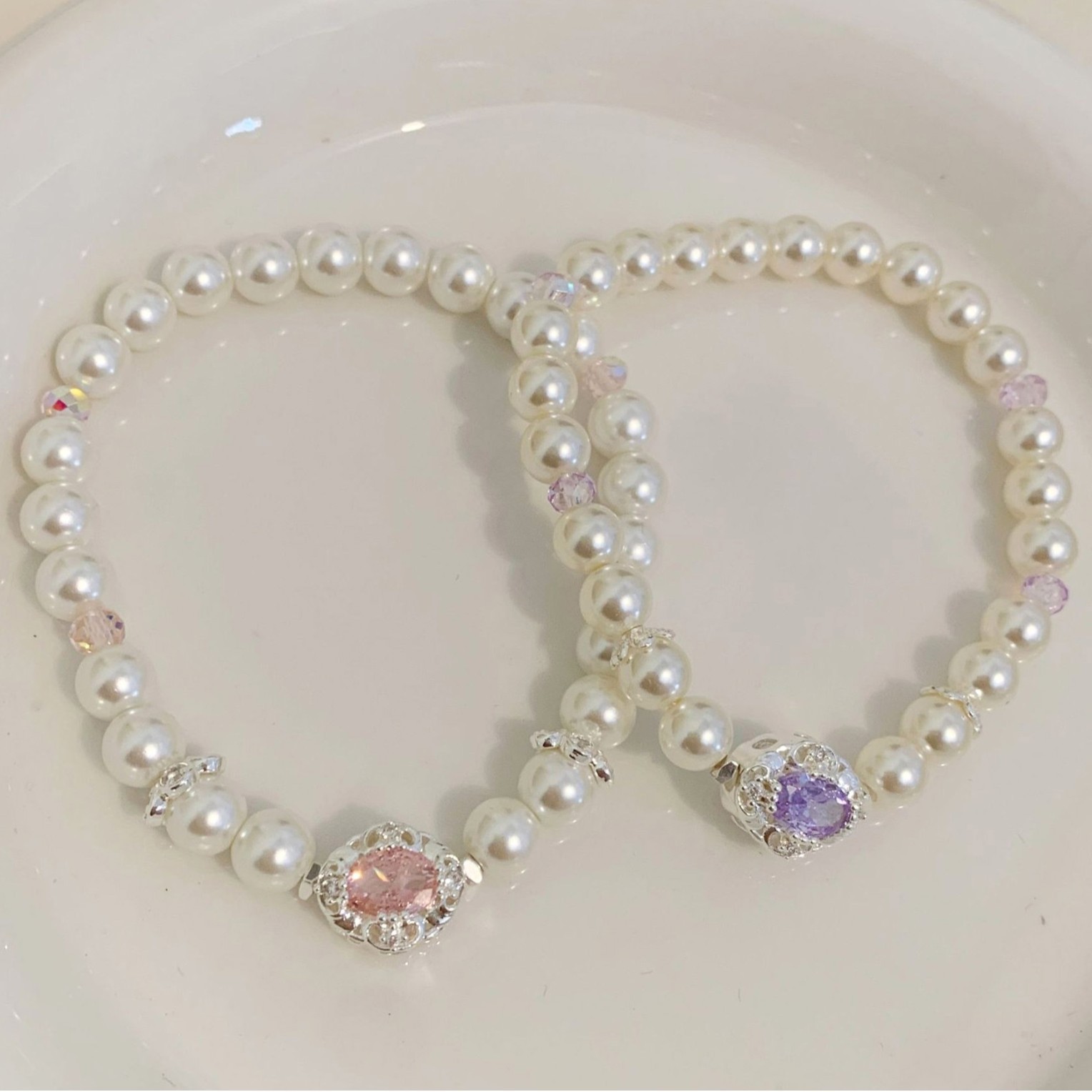 2025新型大衆高級感施家真珠数珠ブレスレット女性楕円型紫色ジルコン弾力ロープブレスレット