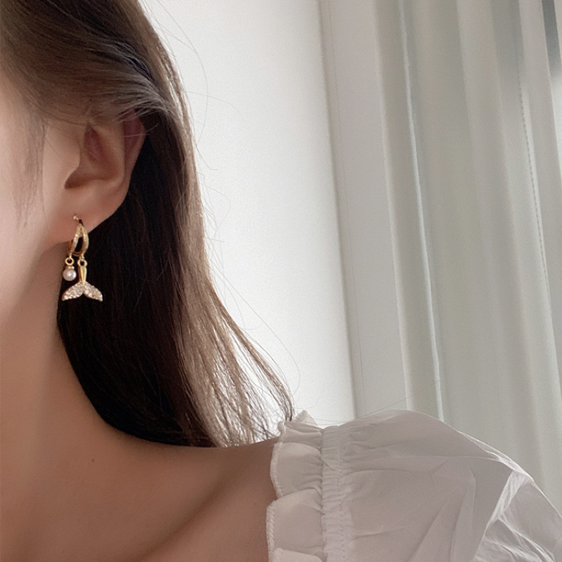 新しいファッションの気質の真珠の森系の魚の尾のイヤリングの女性のシンプルな個性の秋冬の高級感の仙気のイヤリングの女性のイヤリング