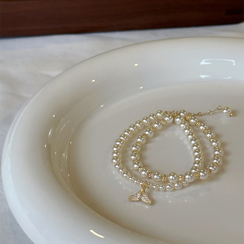 魚尾二重鎖ジルコン真珠の手串ファッション
