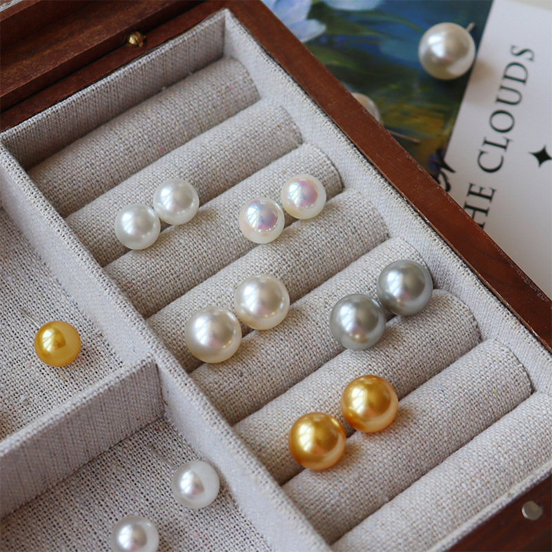S999銀正円極光人工akoya天女級真珠ピアス女性自然伴彩模造海水真珠