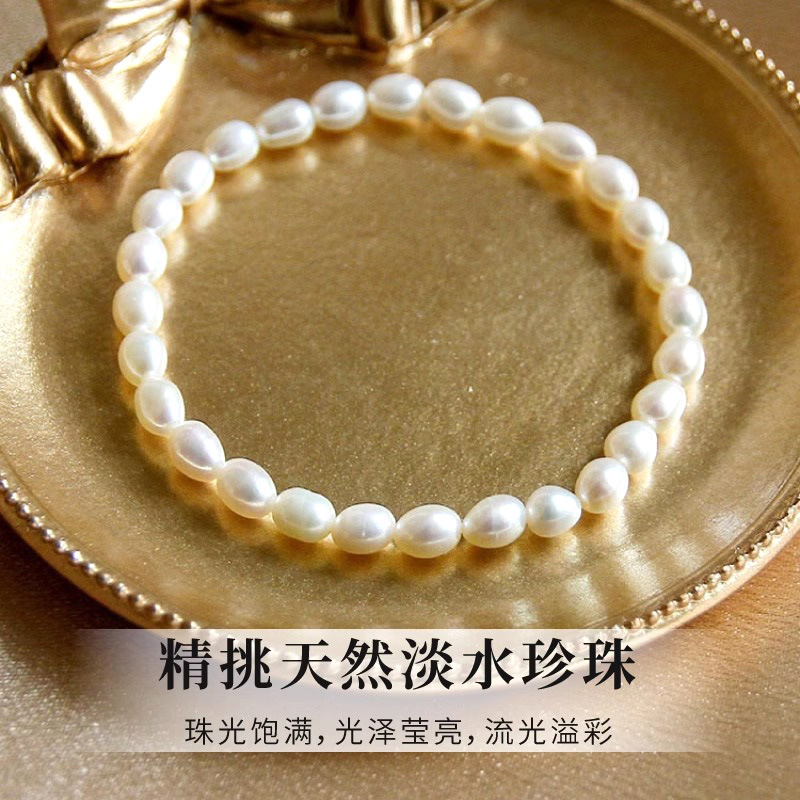 女性用天然本物の淡水パールブレスレット、女性用の小さな米粒型弾性ロープブレスレット、シンプルで多用途なデザイン、高級感