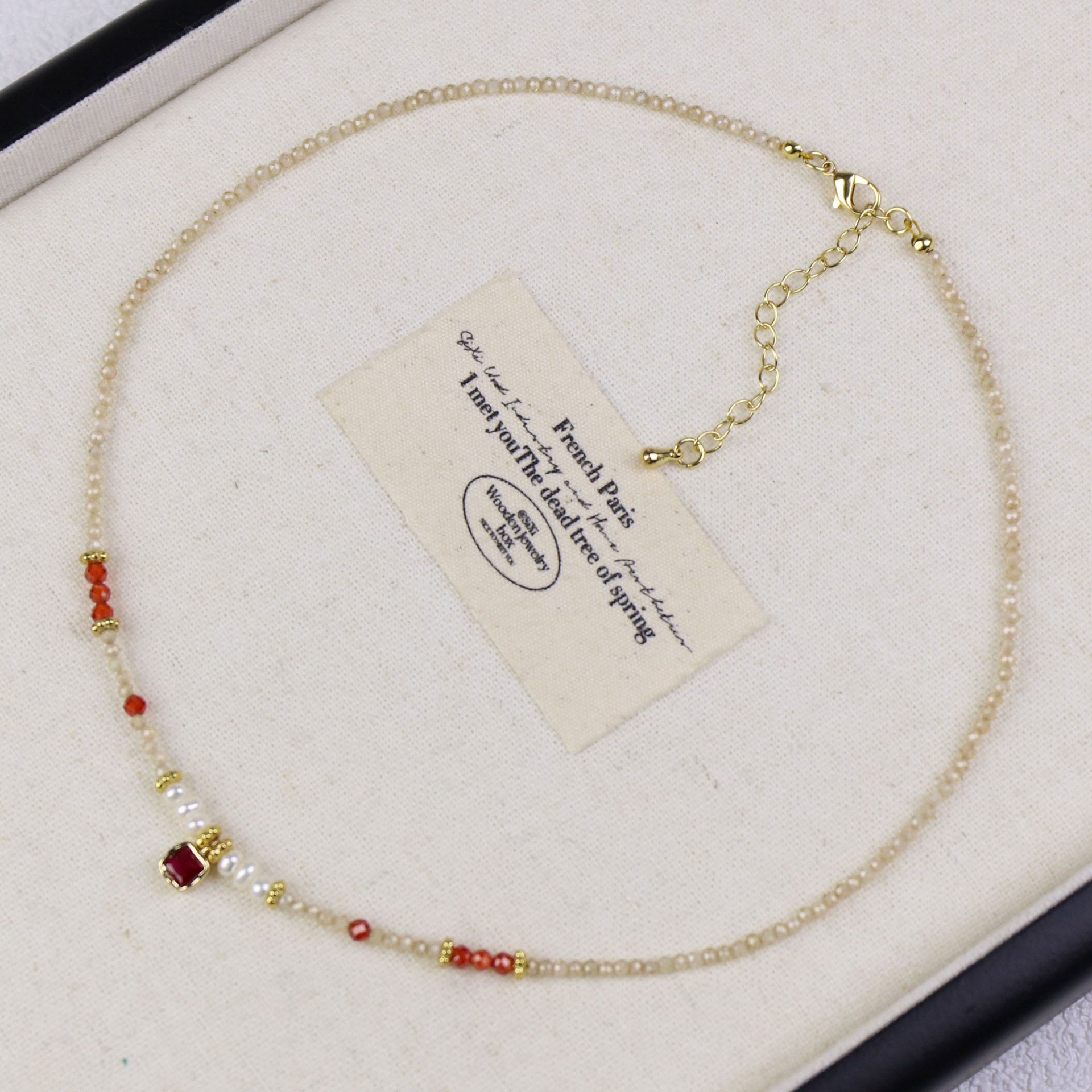 赤い天然石ビーズ水晶真珠ネックレス女性2025新型ファッション