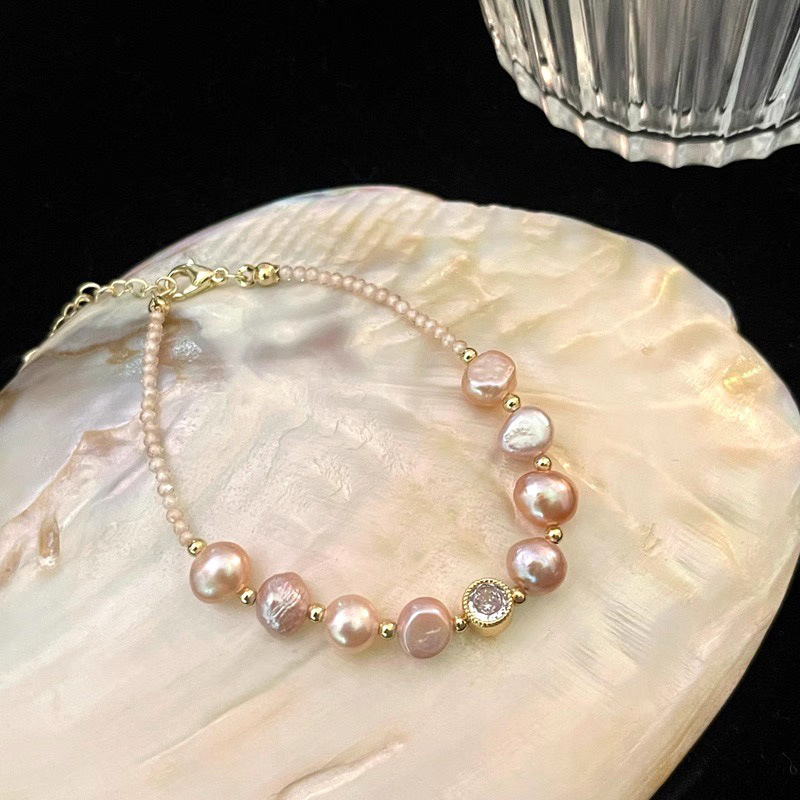 女の子のためのバロック天然淡水真珠ブレスレットライト高級ニッチデザインハイエンドラブビーズブレスレットギフト