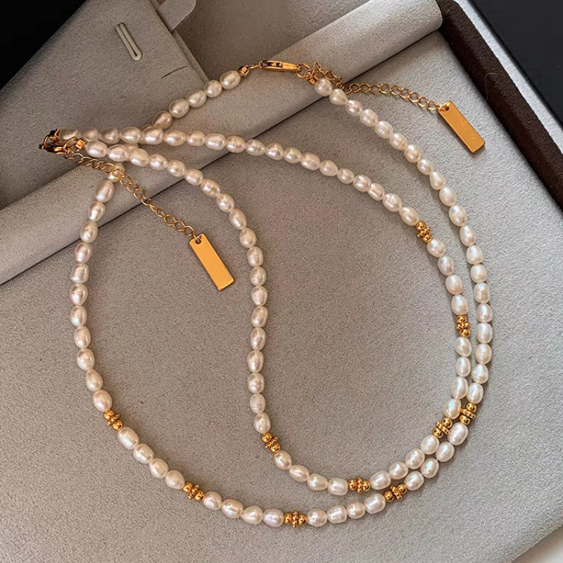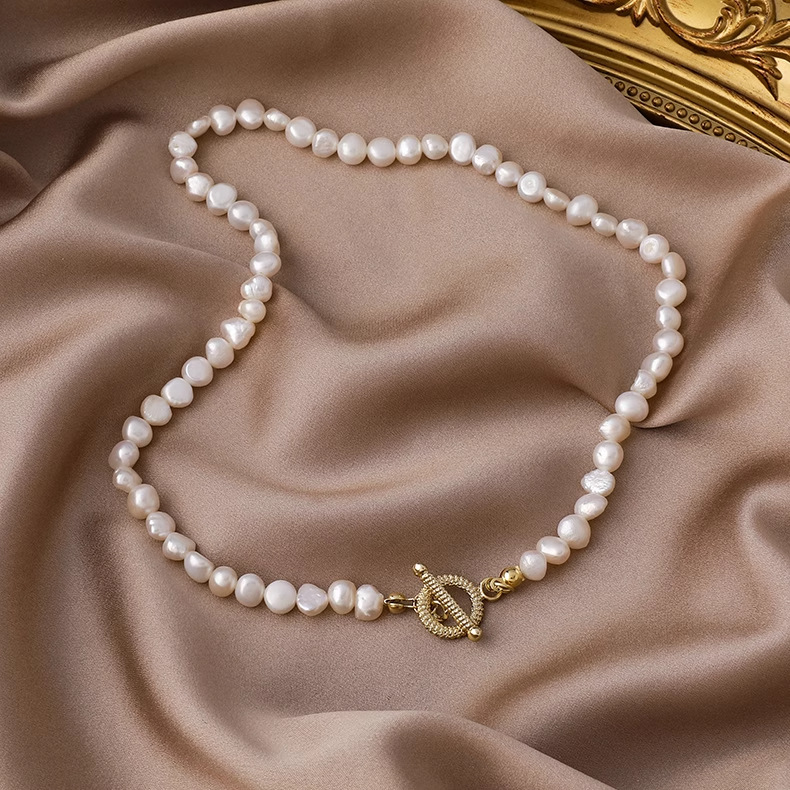 フレンチライス淡水不規則バロックパール真鍮ゴールドメッキビーズネックレス気質インターネットセレブ鎖骨チェーン女性用