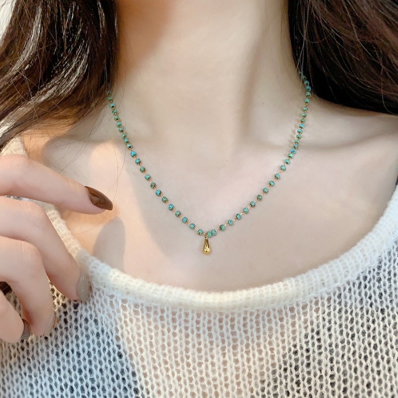 水滴の緑の松石のネックレスの女性の復古の小さい大衆の手作りの数珠の高級な首の鎖の女性の百合のファッションは色の首の鎖を落とさません。