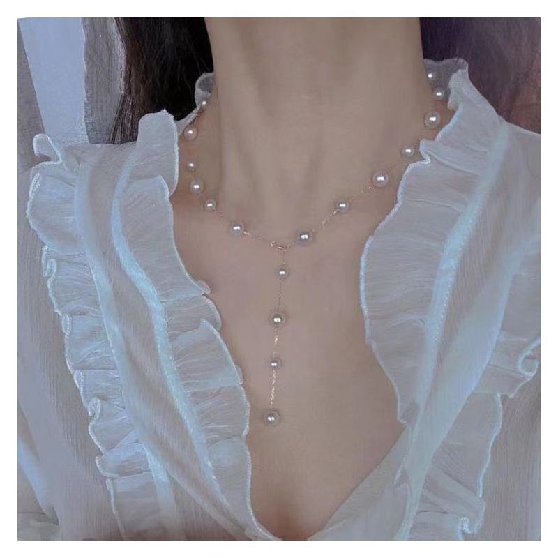 S925 スターリングシルバー Shijia グラデーション Y 字型パールネックレスレディース多用途ニッチセーターチェーンハイエンドライト高級鎖骨チェーン